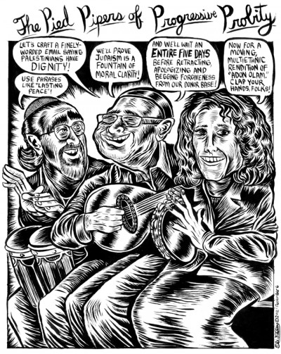 The Forward’s Artist-in-Residence, Eli Valley just published a comic about a recent episode at Bnai Jeshurun, a non-denominational, liberal synagogue in New York City. The rabbis had sent out an email to their congregants praising the U.N. Palestinian vote, and then, after intense media coverage and mixed reactions from the community, they later apologized and said they regretted their decision to send this email. The rabbis wrote that their original email “did not honor the diversity of viewpoints in their community.”