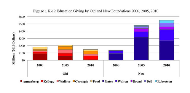 He also says that newer foundations do indeed have different priorities compared to older ones. The latter tends to give substantially to university-based programs and research that aims to improve existing educational systems, while newer foundations donate heavily to charter schools and other organizations that push for more radical change.